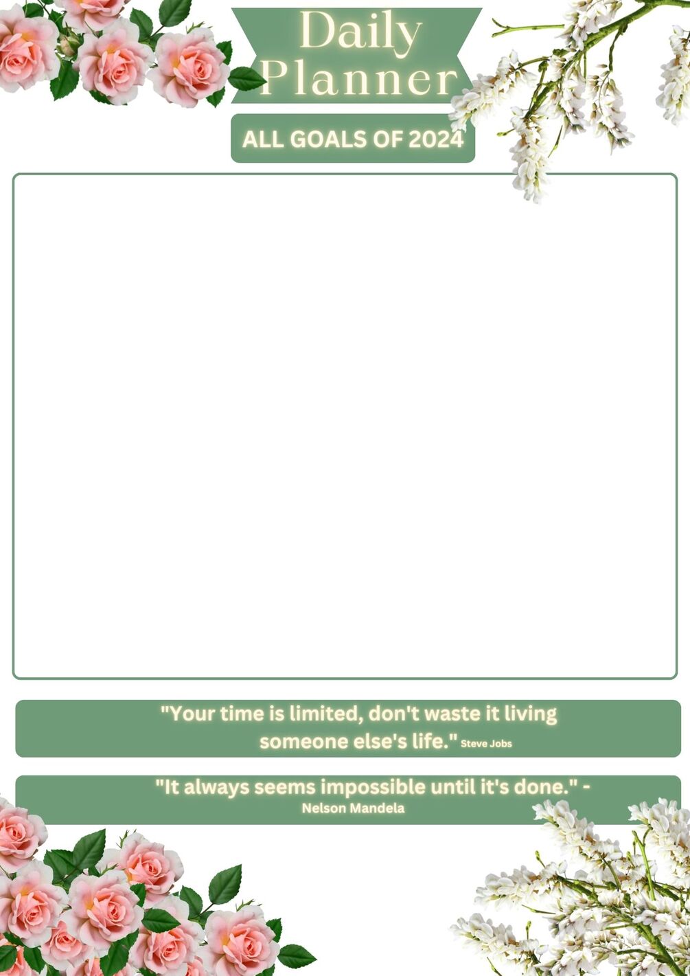 - Goal Setting: Define and track your personal and professional goals for the year. Break them down into manageable tasks and set deadlines to stay on track.